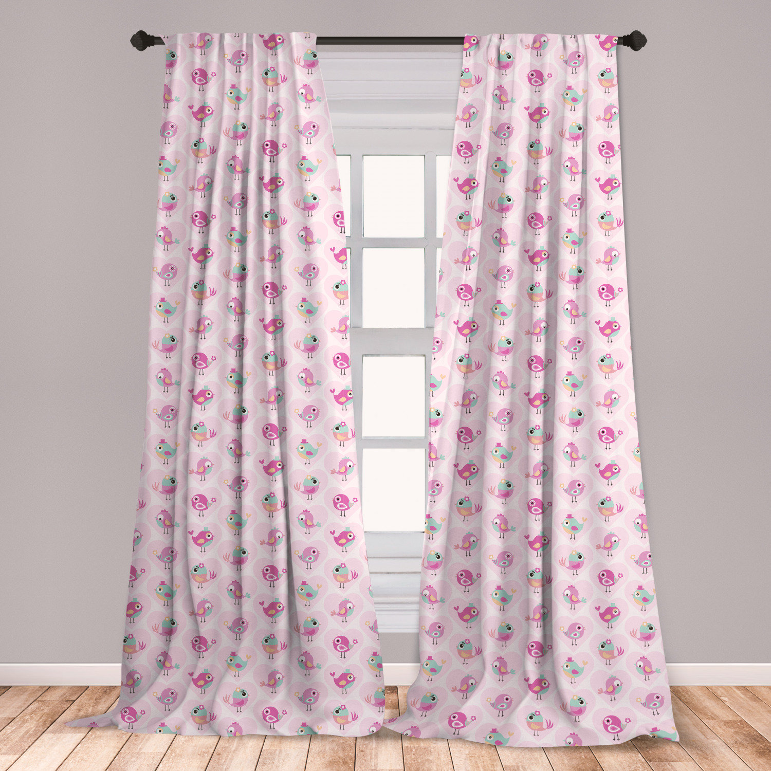 Ambesonne Love Curtains Funny Birds In Pink Hearts With Hats And Flowers Joyful Childish Window Treatments 2 Panel Set For Living Room Bedroom