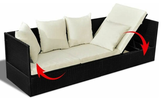 Outdoor Furniture Sun Bed With Cushion Pillow Rattan Black