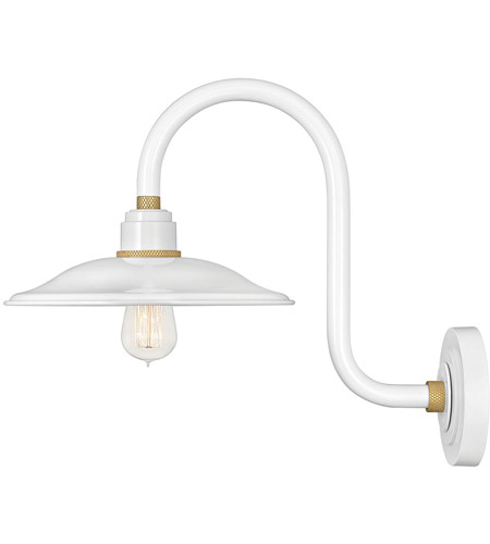 Foundry 1 Light 17 Inch Gloss White With Brass Accents Outdoor Wall Mount