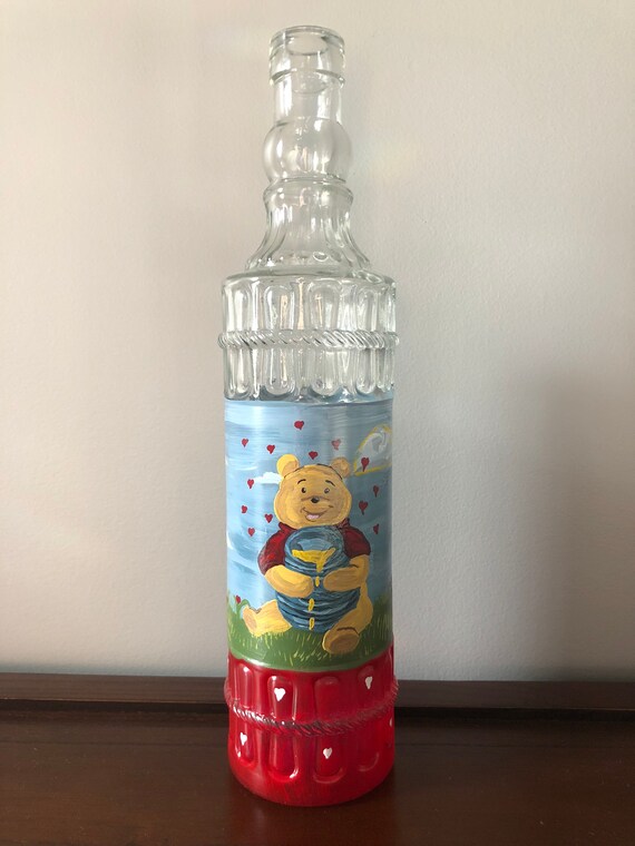Winnie The Pooh Hand Painted Wine Bottle With Led Fairy Lights
